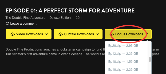 The series is still in production, but we wanted to deliver an early preview of episode 1 "A Perfect Storm for Adventure" here on VHX so we could get your feedback. Since VHX automatically encodes every video uploaded to work within it's system, we're offering this new version of episode 1 as a downloadable zip file that you can find in the "Extras" listing. This way we can be sure you're getting the file exactly as we intended. We'll continue to work with VHX to improve the experience, eventually replacing all the streaming versions of the videos with the new files.